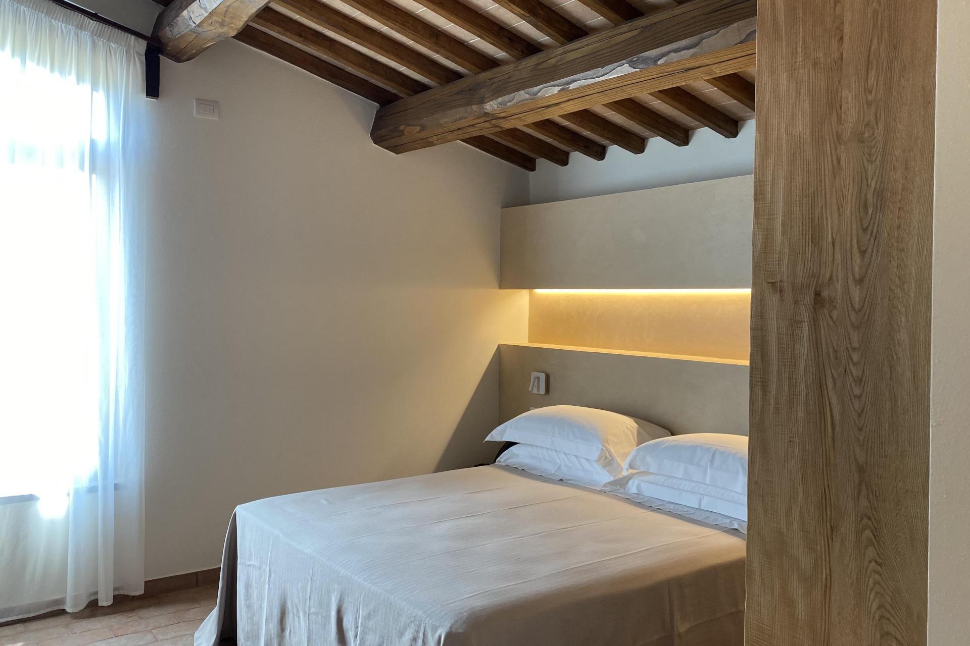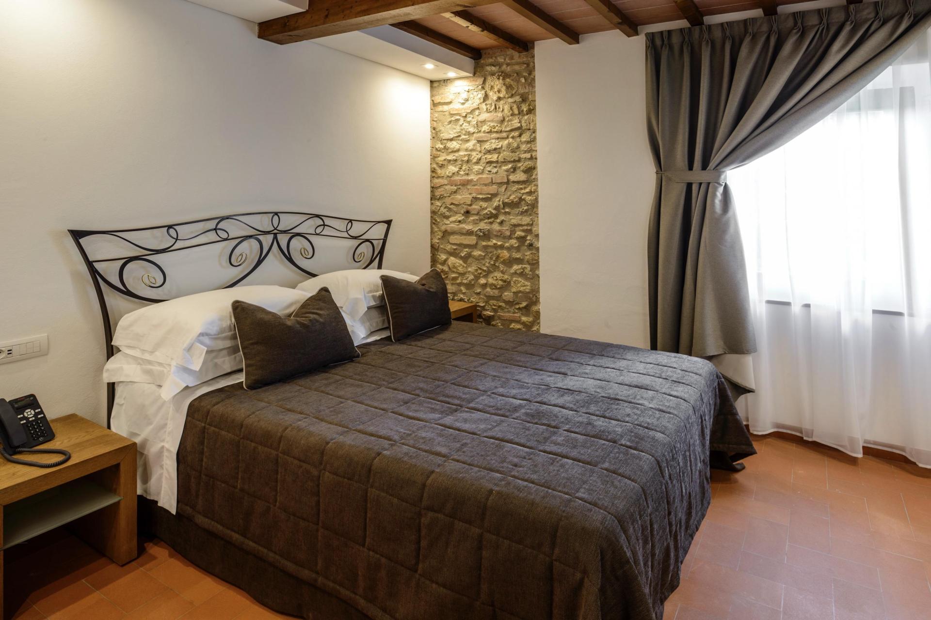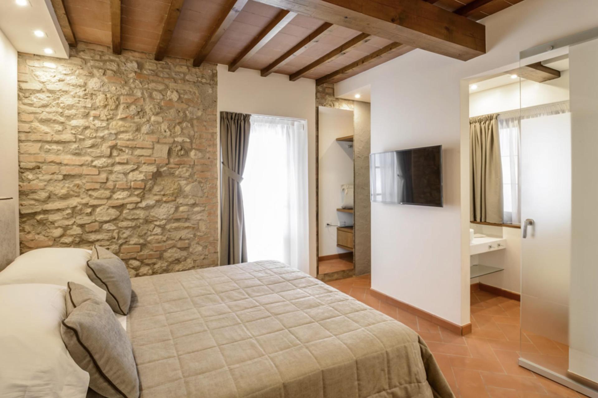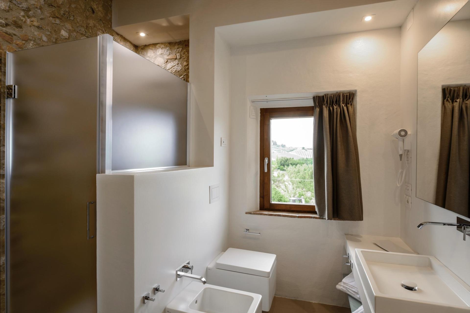You can easily forget about the car for a few days. The agriturismo has a restaurant just approx. 50 metres from the rooms, a breakfast room (located by the restaurant), a swimming pool with views of the hills and a lovely garden with a central fountain where you can relax. And if you fancy an evening stroll or an ice cream from Gelateria Dondoli — one of Tuscany’s most famous gelaterias — you can simply walk into town.