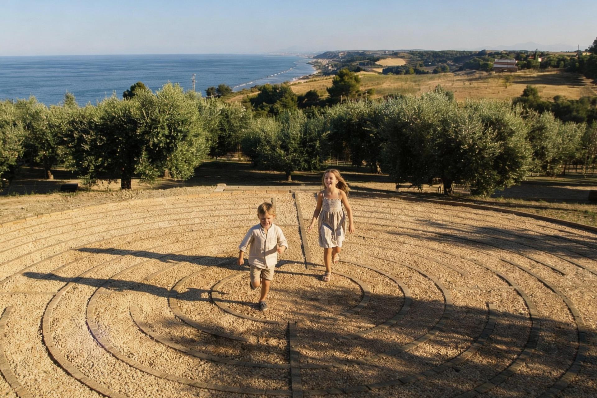 The agriturismo has a fenced pool of 18x7 metres with sun loungers, a jacuzzi and a shallow area for children, and at night it is beautifully illuminated. In the orchard of the agriturismo is a fitness trail, there is a maze (where you have stunning sea views!) and a track where you have to walk barefoot on different surfaces. I had no time to try it, but it sounds like fun to do. For kids too! In the garden there is also a playground with swings, climbing frame and slide.