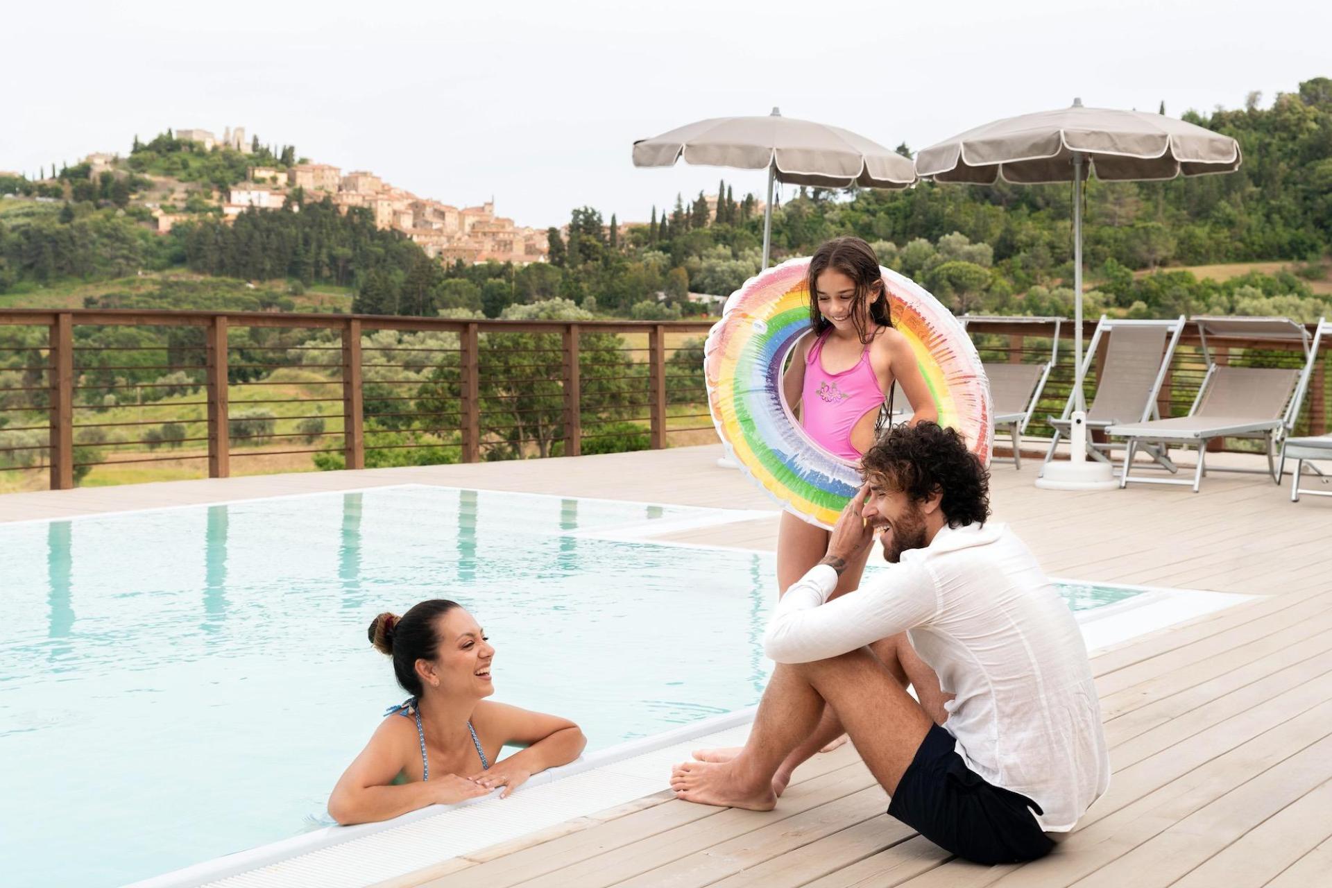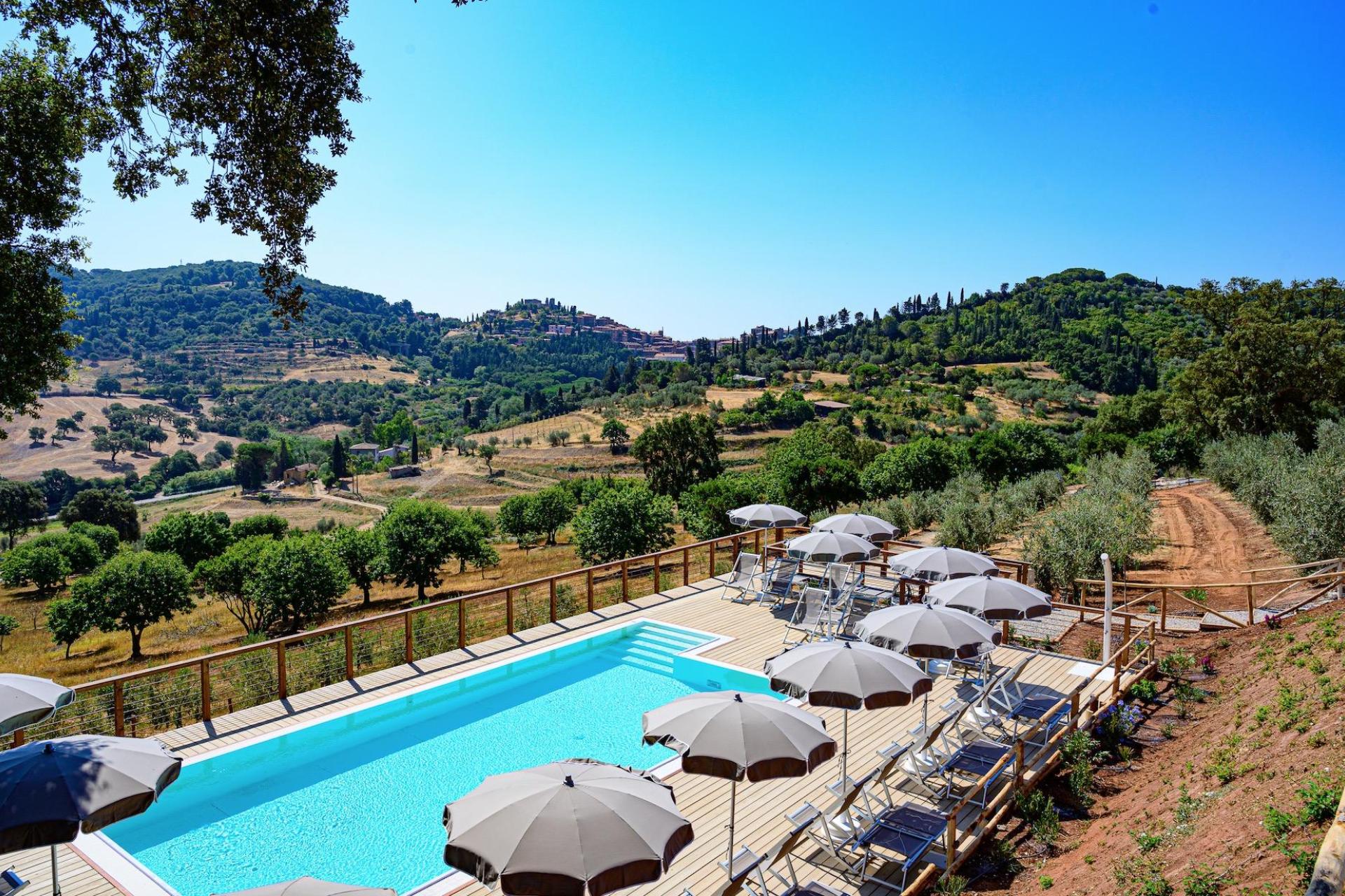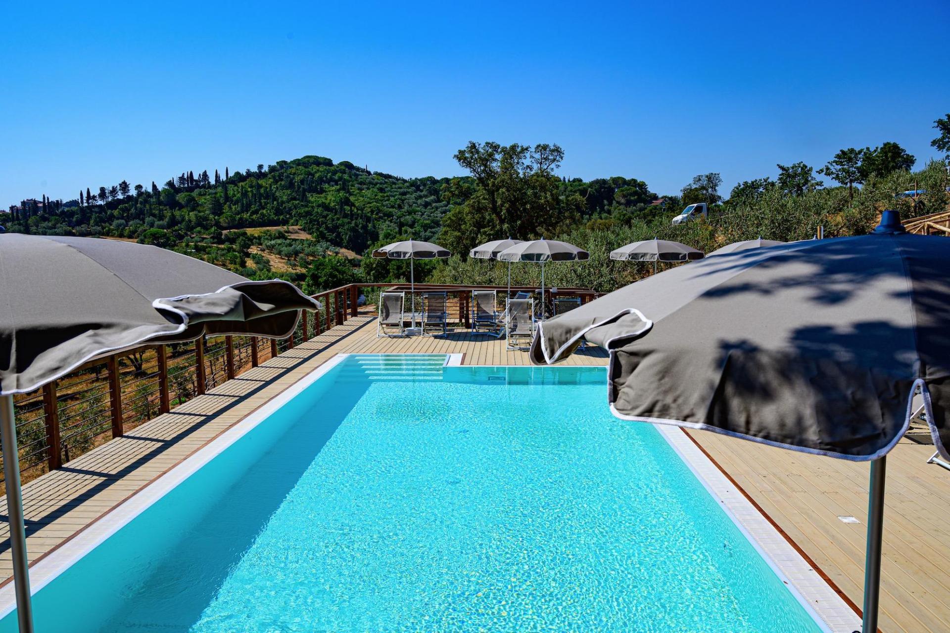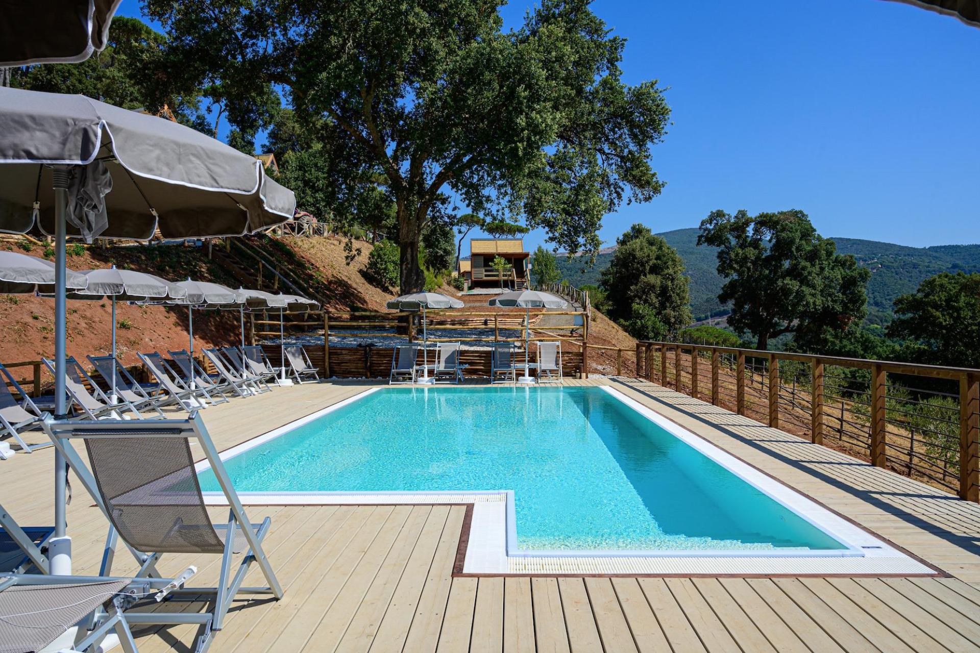 The glamping site has its own panoramic outdoor swimming pool overlooking the Tuscan hills. The pool is open from June until September.