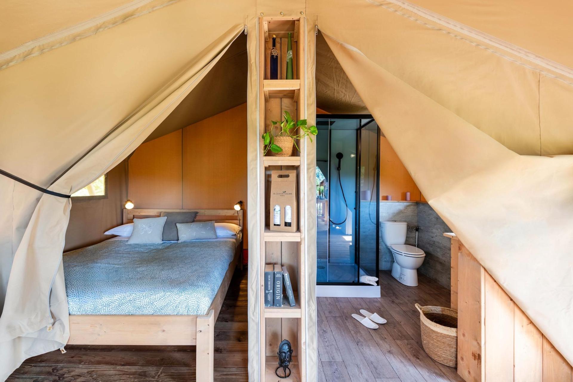 It is an ideal spot for those who enjoy a combination of nature, the sea and authentic Tuscan villages. All around the glamping site you look out over olive groves, woodland and vineyards – a typically Tuscan landscape that immediately creates a holiday atmosphere.