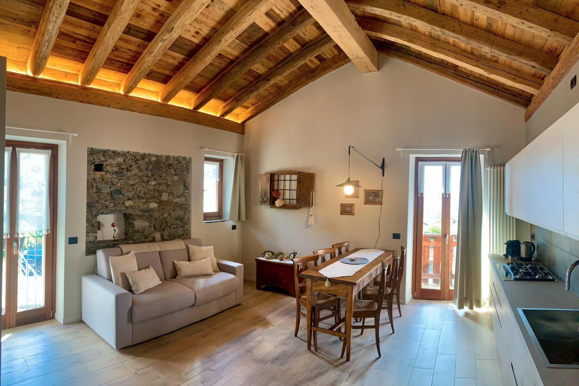 Nestled at the base of Lake Como's largest mountain, on the outskirts of a village, this agriturismo blends seamlessly with its surroundings of houses and meadows. Staying here immerses you in the authentic Italian lifestyle, mingling with locals and savoring the atmosphere. The apartments are housed in charming stone buildings that retain their traditional stacked stone architecture, known as "rustico in sasso", adorned with large wooden beams where possibile. While offering modern comforts, the accommodations maintain the rustic charm of the past. This combination creates a welcoming and genuine ambiance, perfect for a comfortable stay throughout the year.