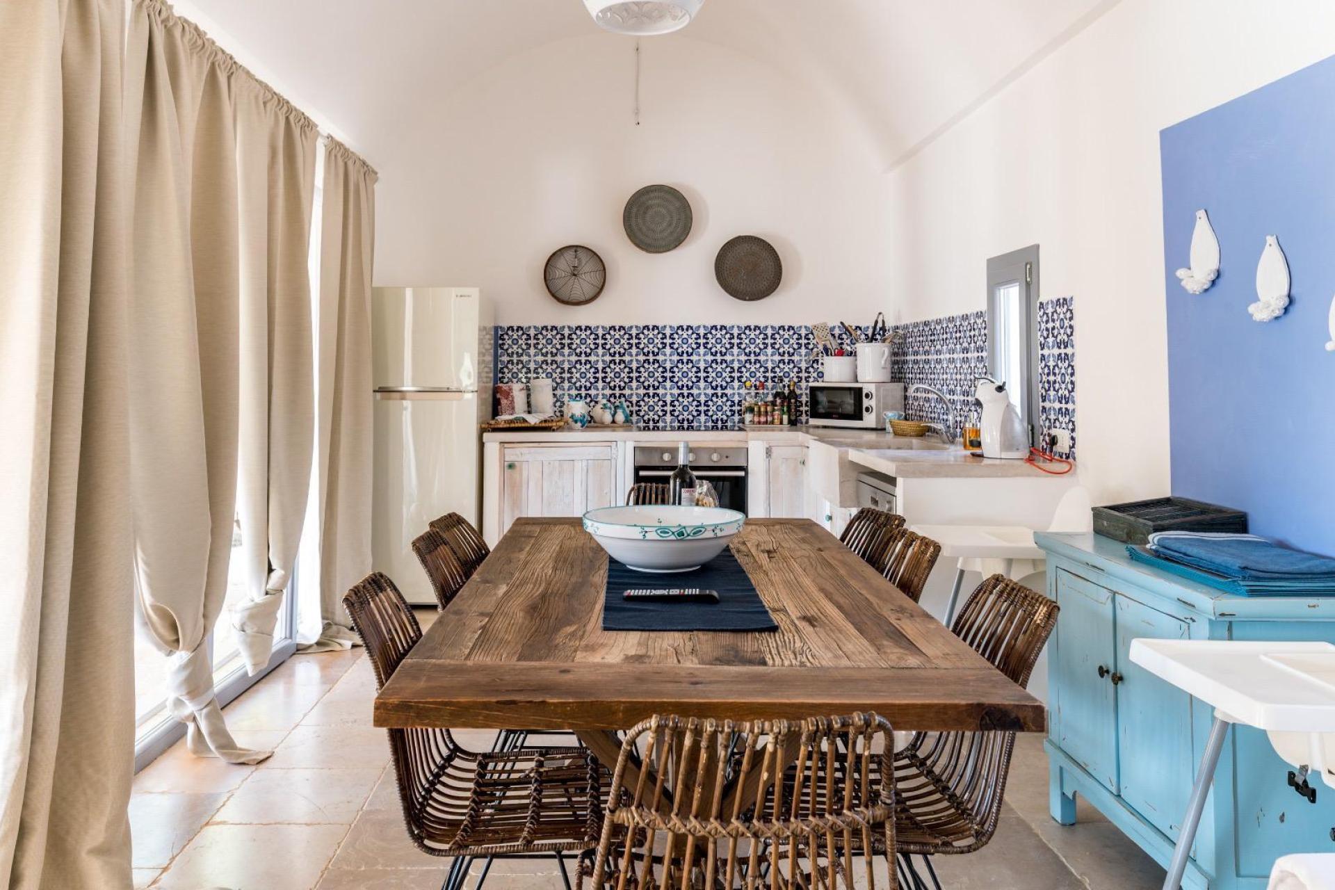 The trullo is also equipped with air conditioning, Wi-Fi, TV, a washing machine, kettle, toaster and microwave.