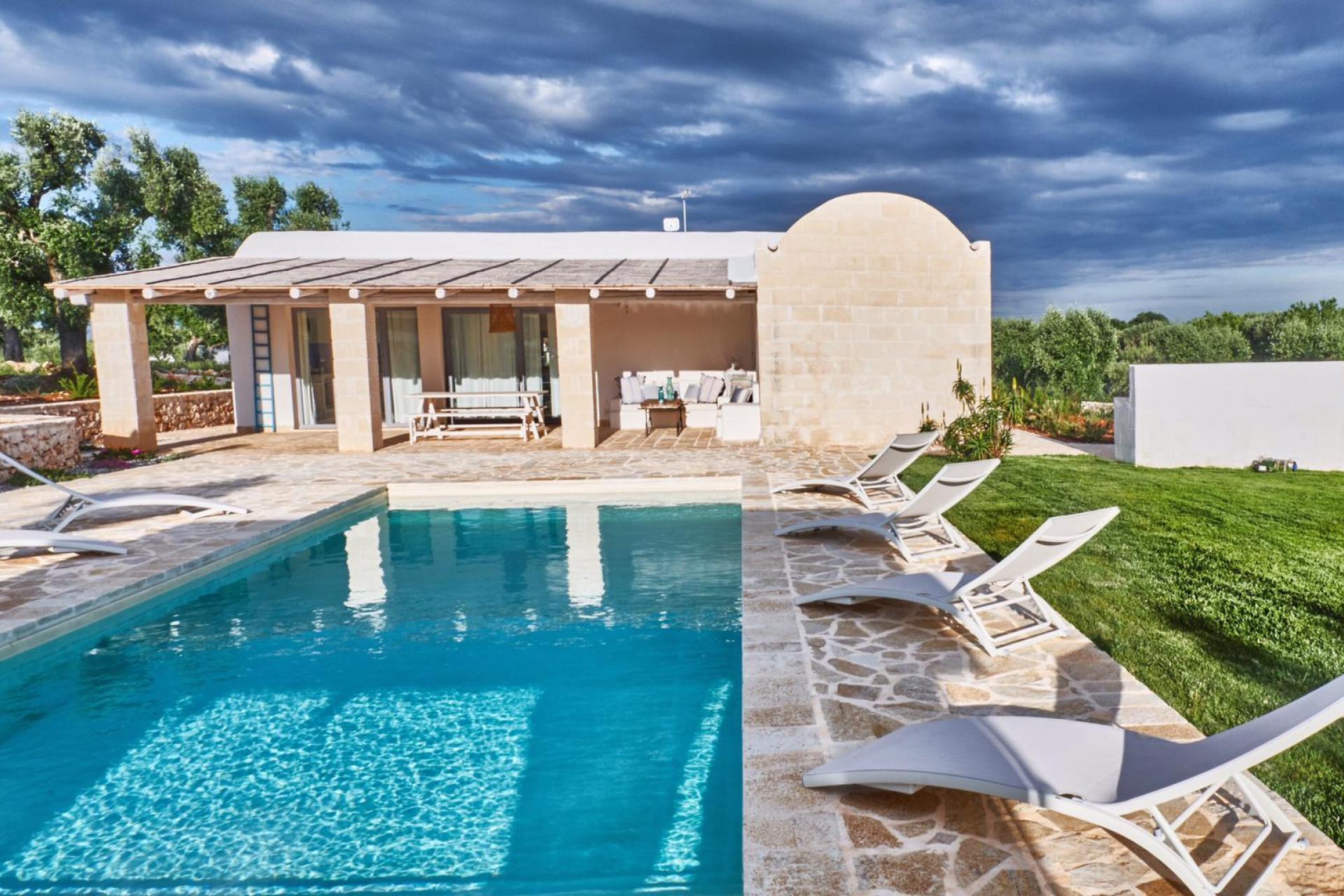 A beautiful private trullo with its own pool, ideal for 2 or 3 couples or a family. With 3 bedrooms, each with a private bathroom, a renovated trullo and a separate stone lamia. The perfect place for anyone seeking privacy, comfort and the authentic atmosphere of Puglia.