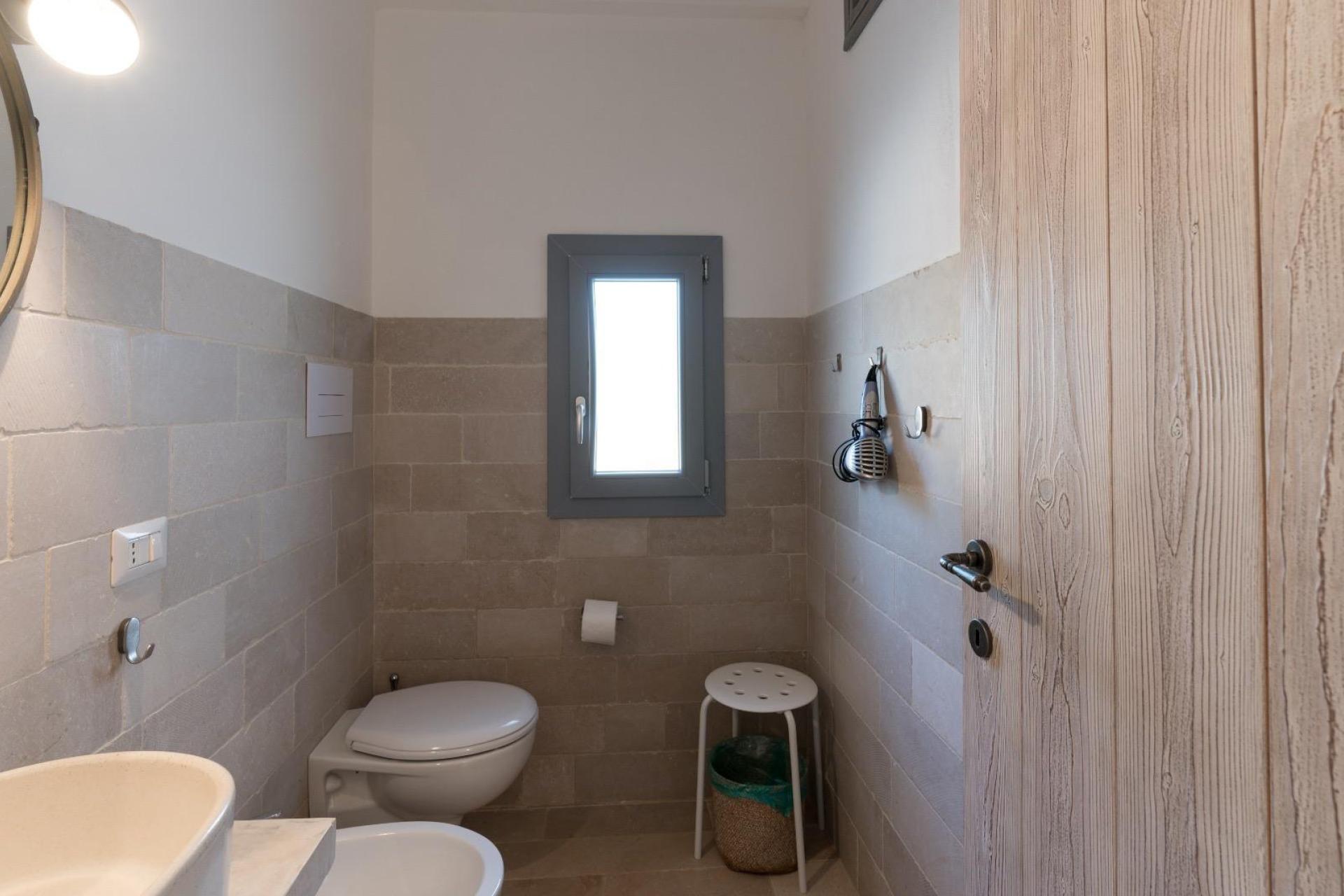 Next to it, separate from the trullo, is a lamia – a typical stone structure of the region – with a living room with sofa, a kitchenette with dishwasher, two double bedrooms and two bathrooms with shower.