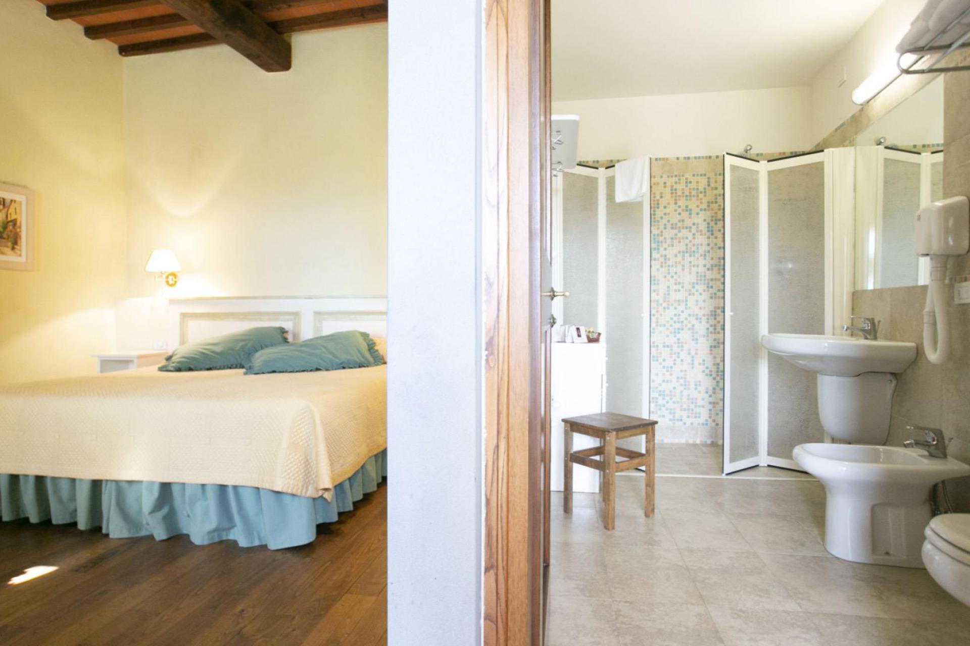 This authentic agriturismo is the second stop on your journey and offers a true Tuscan experience. Located on a hill in the Chianti region, between San Gimignano and Florence, grapes and olives have been grown here for three generations. The location offers breathtaking views of the surrounding vineyards. There is a restaurant that serves local dishes, as well as breakfast in the mornings. Upon arrival, you will be warmly welcomed by the reception ladies, who are happy to provide you with information and ensure your stay is unforgettable.